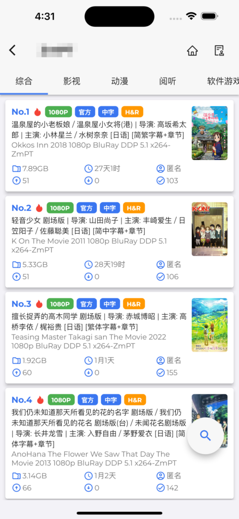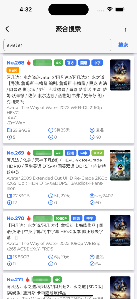 - 支持多线程站点聚合搜索,支持搜索结果标签筛选。